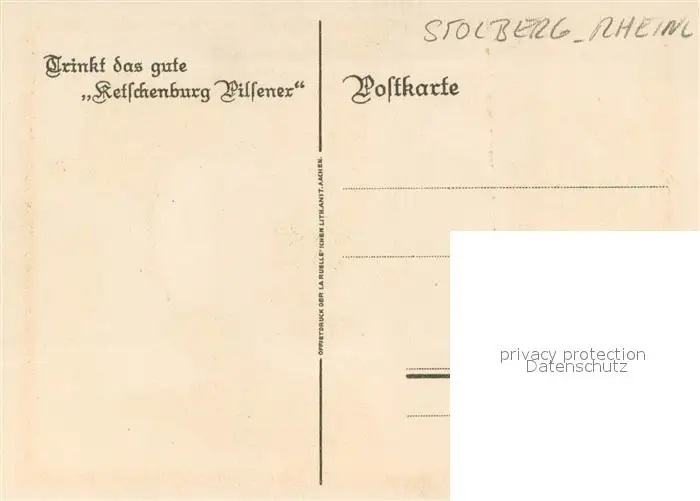 Stolberg_Rheinland Retschenburg Pilsener Stolberg_Rheinland postalisch nicht gelaufen 1921-1965 Erhaltung siehe scans [LiesaD40] LiesID40