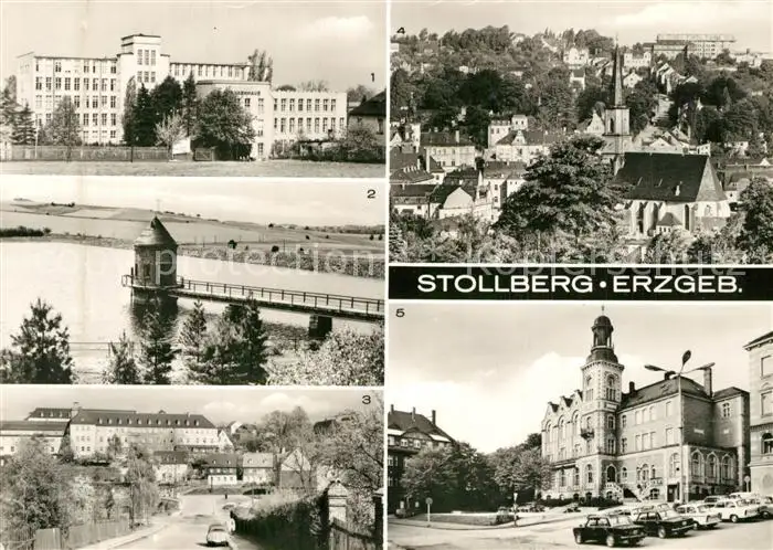 AK / Ansichtskarte Stollberg_Erzgebirge Bergbaukrankenhaus Querenbachtalsperre Kreiskrankenhaus Teilansicht Rathaus Stollberg Erzgebirge