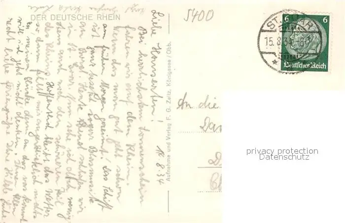 Stolzenfels Schloss Stolzenfels Blick ins Rheintal Stolzenfels postalisch gelaufen 1934 Erhaltung siehe scans [FriedD77] Frierer