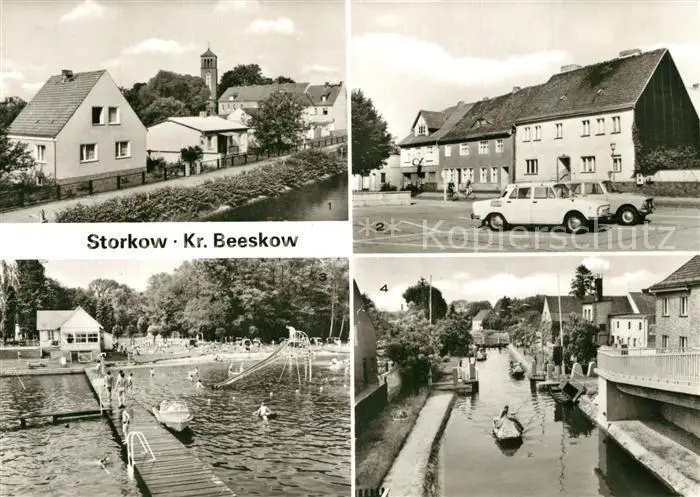 Storkow_Mark Teilansicht Markt Freibad Starkower See Schleuse Storkow Mark postalisch nicht gelaufen 1982 Erhaltung siehe scans [FriedD77] Frierer