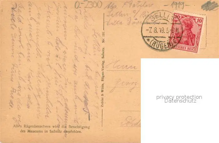 Stralsund Eisenbahnfaehre nach Ruegen postalisch gelaufen 1919 Erhaltung siehe scans [FriedD77] Frierer