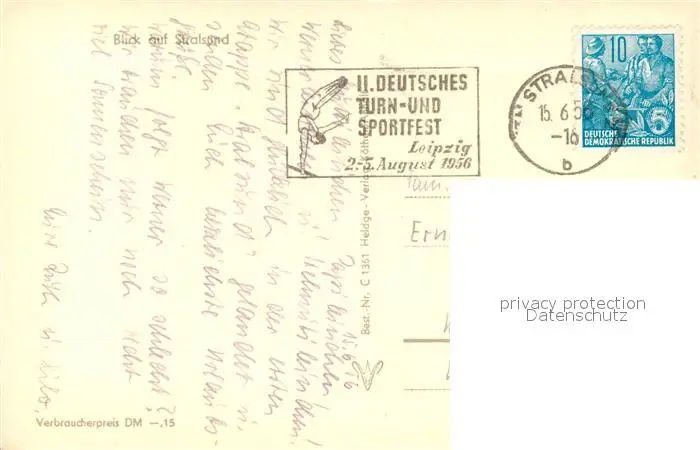 Stralsund_Mecklenburg_Vorpommern Ansicht vom Meer aus Stralsund_Mecklenburg postalisch gelaufen 1956 Erhaltung siehe scans [FriedD77] Frierer