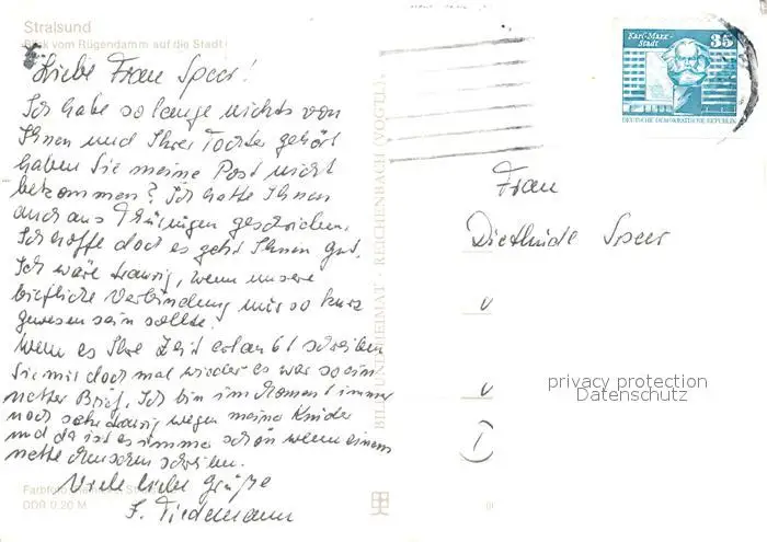 Stralsund_Mecklenburg_Vorpommern Blick vom Ruegendamm Stralsund_Mecklenburg postalisch gelaufen nach 1965 Erhaltung siehe scans [PaolaD17] PaolPID1