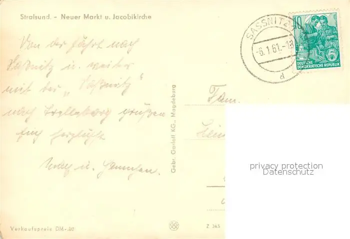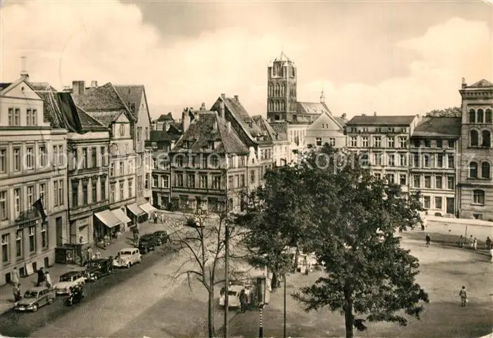 Stralsund_Mecklenburg Kategorie Alte Ansichtskarten Postkarten bx87205 Stralsund_Mecklenburg_Vorpommern Neuer Markt und Jacobikirche Stralsund_Mecklenburg postalisch gelaufen 1961 Erhaltung siehe scans [WerneD78]
