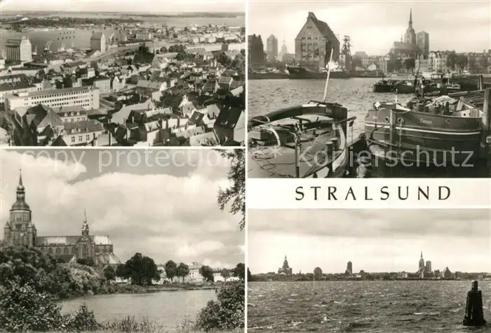 AK / Ansichtskarte Stralsund_Mecklenburg_Vorpommern Panorama Marienkirche Hafen Stralsund_Mecklenburg