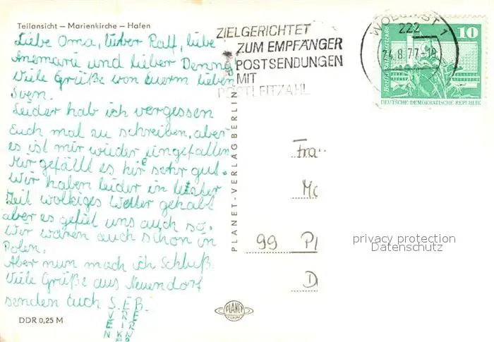 Stralsund_Mecklenburg_Vorpommern Panorama Marienkirche Hafen Stralsund_Mecklenburg postalisch gelaufen 1977 Erhaltung siehe scans [FriedD77] Frierer