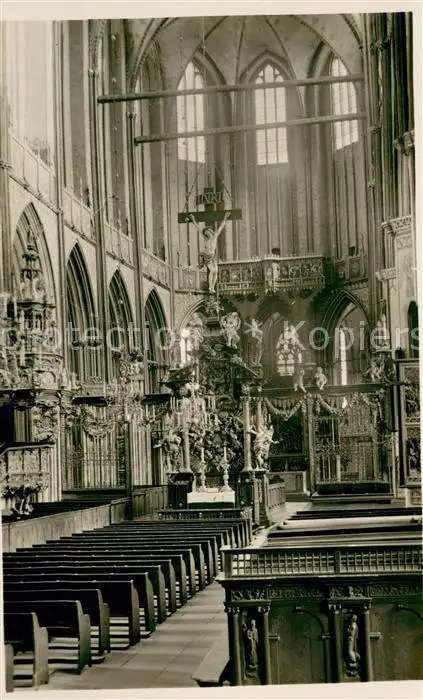 Stralsund_Mecklenburg_Vorpommern Sankt Nikolai Kirche Mittelschiff Traualtar Hochaltar Kanzel Stralsund_Mecklenburg postalisch nicht gelaufen 1921-1965 Erhaltung siehe scans [FriedD77] Frierer