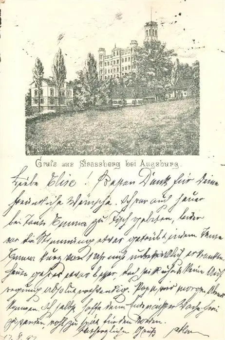 Strassberg Bobingen Kategorie Alte Ansichtskarten Postkarten bx76153 Strassberg_Bobingen Schloss Strassberg Bobingen postalisch gelaufen 1897 Erhaltung siehe scans [KathaD81]