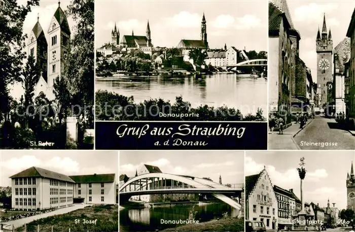 Straubing Donaupartie St.Peter St.Josef Donaubruecke Steinergasse Stadtplatz Straubing postalisch gelaufen 1961 Erhaltung siehe scans [LiesaD40] LiesID40
