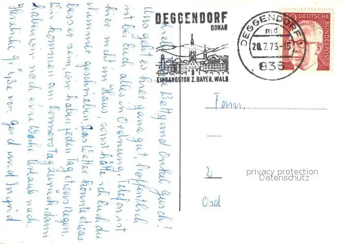 Straubing Theresienplatz mit Dreifaltigkeistss?ule und Stadtturm Straubing postalisch gelaufen 1973 Erhaltung siehe scans [LiesaD40] LiesID40