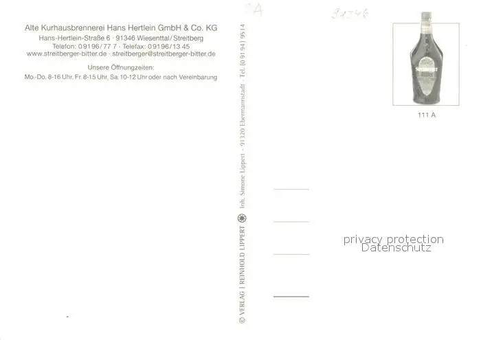 Streitberg_Oberfranken Alte Kurhausbrennerei Hans Hertlein Streitberg Oberfranken postalisch nicht gelaufen nach 1965 Erhaltung siehe scans [WerneD78] WernPID7