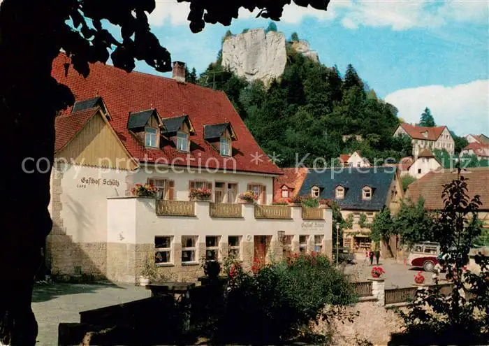 AK / Ansichtskarte Streitberg_Oberfranken Hotel Gasthof Schuetz Aussenansicht Streitberg Oberfranken