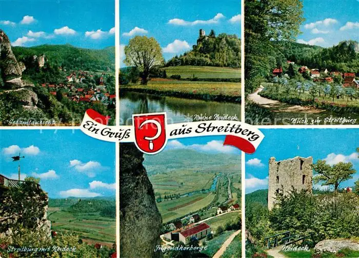 Streitberg_Oberfranken Panorama Ruine Neideck Streitburg Burgruine Jugendherberge Streitberg Oberfranken postalisch nicht gelaufen nach 1965 Erhaltung siehe scans [FriedD77] Frierer