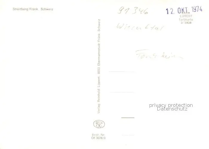 Streitberg_Oberfranken Panorama Streitberg Oberfranken postalisch nicht gelaufen 1974 Erhaltung siehe scans [FriedD77] Frierer