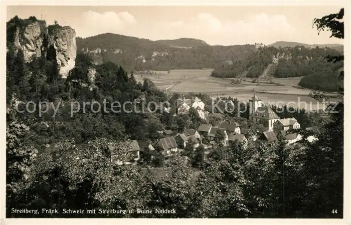 Streitberg_Oberfranken Panorama mit Streitburg und Ruine Neideck Streitberg Oberfranken postalisch gelaufen 1935 Erhaltung siehe scans [FriedD77] Frierer