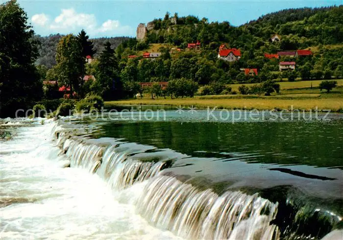 AK / Ansichtskarte Streitberg_Oberfranken Partie an der Wiesent Blick aufs Wehr Streitberg Oberfranken