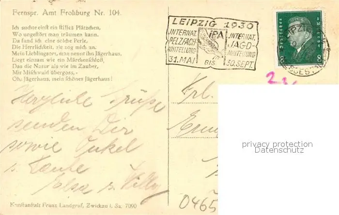 Streitwald Gasthaus Jaegerhaus Gedicht Streitwald postalisch gelaufen 1930 Erhaltung siehe scans [KathaD81] Kathoren