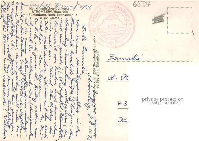 Stromberg_Hunsrueck Panorama Luftkurort mit Fustenburg Krankenhaus Kirche Stromberg Hunsrueck postalisch gelaufen 1972 Erhaltung siehe scans [FriedD77] Frierer
