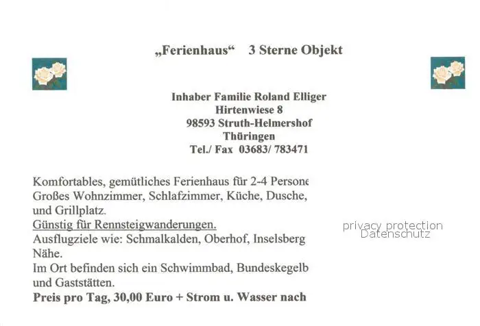 Struth-Helmershof Ferienhaus Elliger Struth-Helmershof postalisch nicht gelaufen nach 1965 Werbekarte (keine Postkarte) Erhaltung siehe scans [WerneD78] Werbekarte (keine Postkarte) WernPID7
