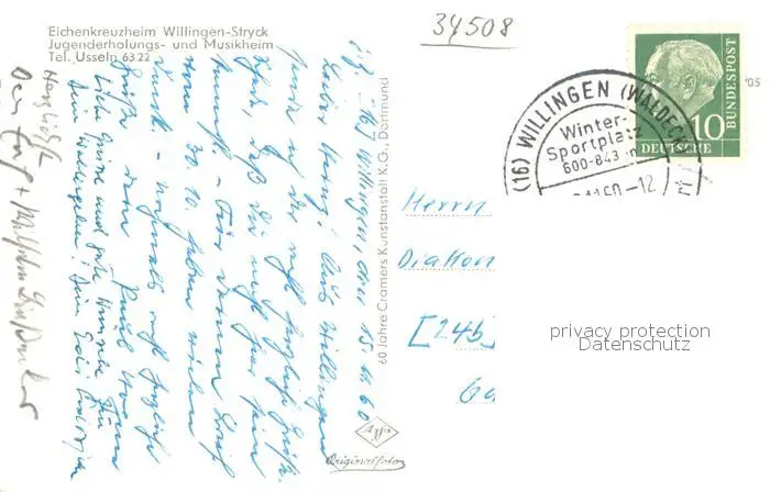 Stryck Eichenkreuzheim Jugenderholungs und Musikheim Stryck postalisch gelaufen 1960 Erhaltung siehe scans [WerneD78] WernPID7