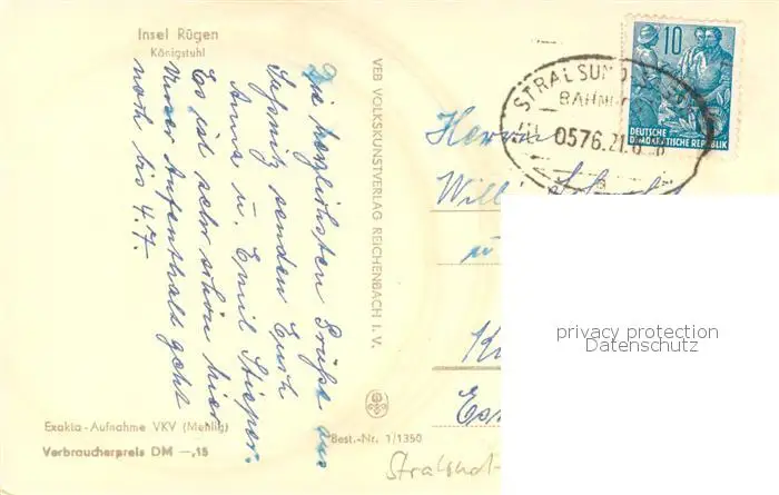 Stubbenkammer_Ruegen Koenigsstuhl Kreidefelsen Steilkueste Stubbenkammer Ruegen postalisch gelaufen 1957 Bahnpost Erhaltung siehe scans [FriedD77] Bahnpost Frierer