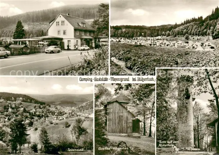 AK / Ansichtskarte Stuetzerbach Camping Gaststaette Meyersgrund Goethe Haeuschen Kickelhahn Turm Stuetzerbach