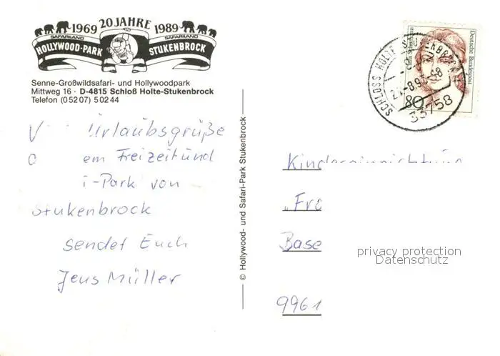 Stukenbrock 20 Jahre Hollywoodpark Safariland Tiger Flamingos Stukenbrock postalisch gelaufen 1995 Erhaltung siehe scans [FriedD77] Frierer