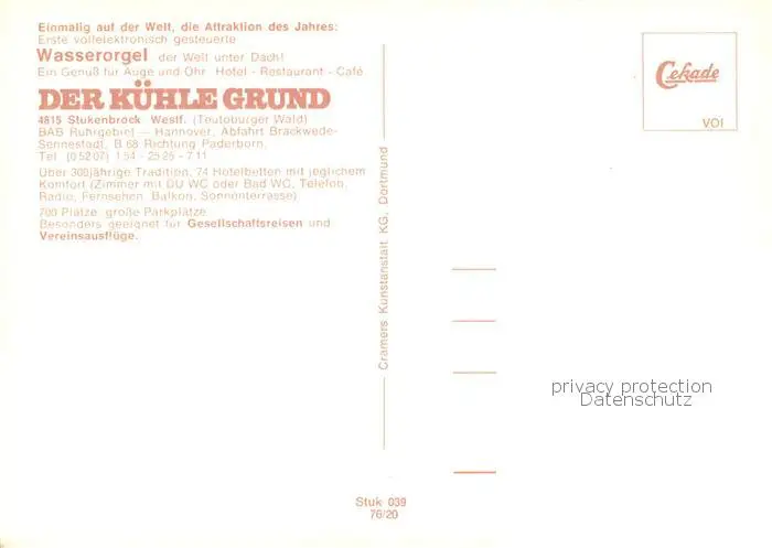 Stukenbrock Hotel Restaurant Der Kuehle Grund Gastraeume Terrasse Stukenbrock postalisch nicht gelaufen nach 1965 Erhaltung siehe scans [WerneD78] WernPID7