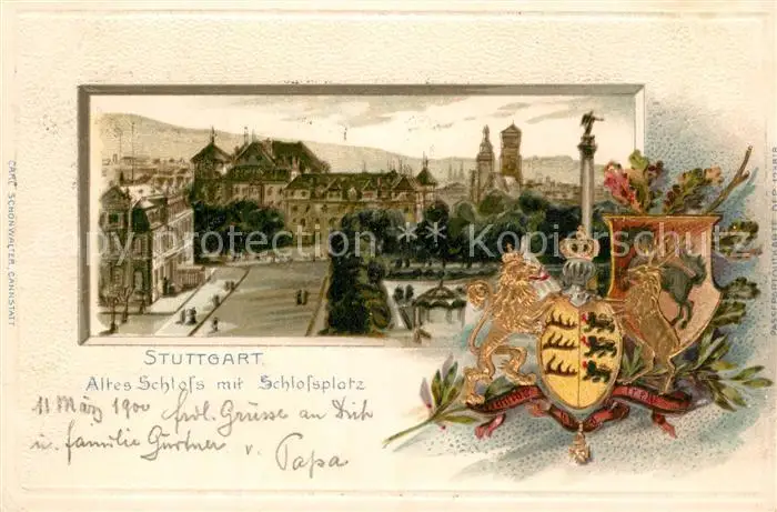 Stuttgart Kategorie Alte Ansichtskarten Postkarten bx88217 Stuttgart Altes Schloss mit Schlossplatz Stuttgart postalisch gelaufen 1900 Erhaltung siehe scans [WerneD78]
