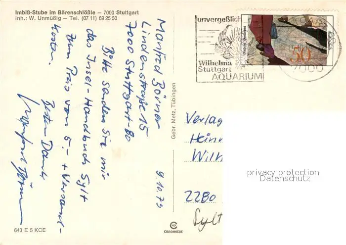 Stuttgart Baerenschloessle Rotwildpark Stuttgart postalisch gelaufen 1979 Erhaltung siehe scans [LiesaD40] LiesID40