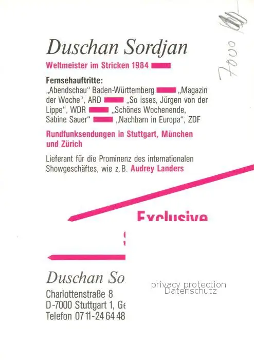 Stuttgart Duschan Sordjan Portrait Weltmeister im Stricken 1984 Stuttgart postalisch nicht gelaufen 1984 Erhaltung siehe scans [WerneD78] WernPID7