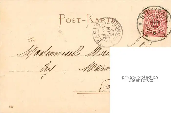 Stuttgart Kategorie Alte Ansichtskarten Postkarten bx80779 Stuttgart Hotel Marquardt Vestibuel Stuttgart postalisch gelaufen 1899 Erhaltung siehe scans [KathaD81]