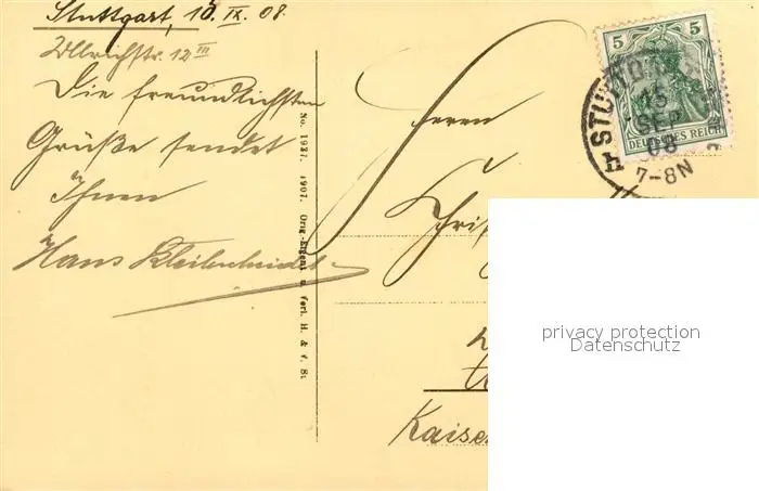 Stuttgart Schlossplatz mit Siegessaeule Stuttgart postalisch gelaufen 1908 Erhaltung siehe scans [WerneD78] WernPID7