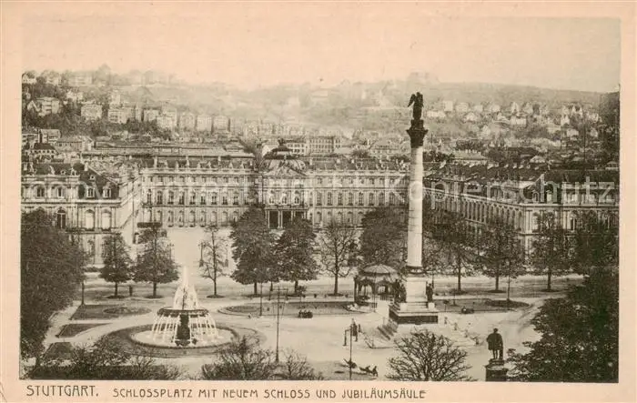 AK / Ansichtskarte Stuttgart Schlossplatz mit neuem Schloss und Jubilaeumsaeule Stuttgart