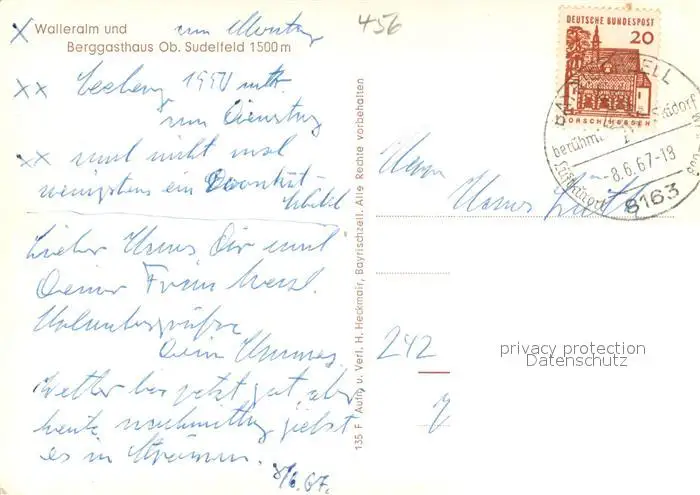 Sudelfeld Walleralm und Berggasthaus Sudelfeld postalisch gelaufen 1967 Erhaltung siehe scans [WerneD78] WernPID7