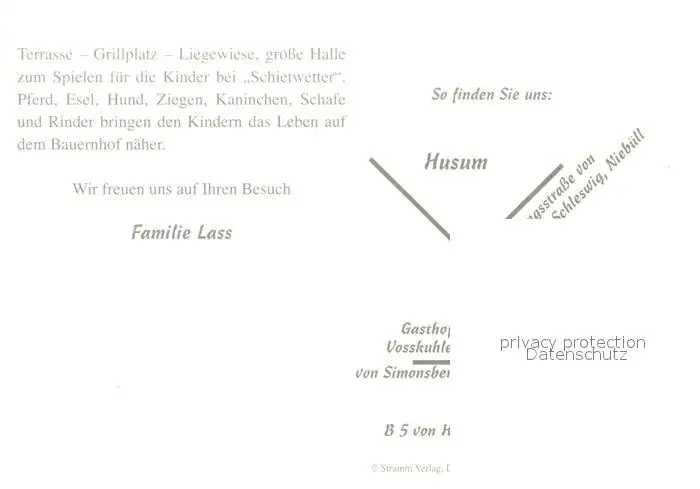 Suedermarsch_Husum Ferienhof Lass Zimmer Bungalow Suedermarsch Husum postalisch nicht gelaufen nach 1965 Werbekarte (keine Postkarte) Erhaltung siehe scans [WerneD78] Werbekarte (keine Postkarte) WernPID7