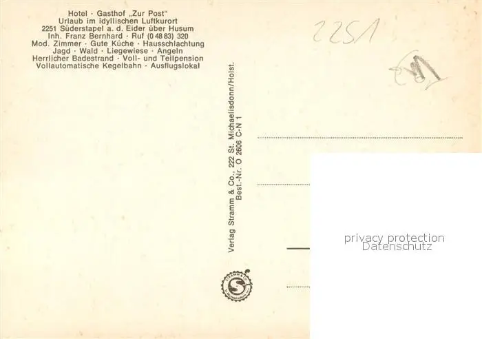 Suederstapel Ferien an der Eider Hotel Gasthof zur Post Luftkurort Fliegeraufnahmen Suederstapel postalisch nicht gelaufen nach 1965 Erhaltung siehe scans [FriedD77] Frierer