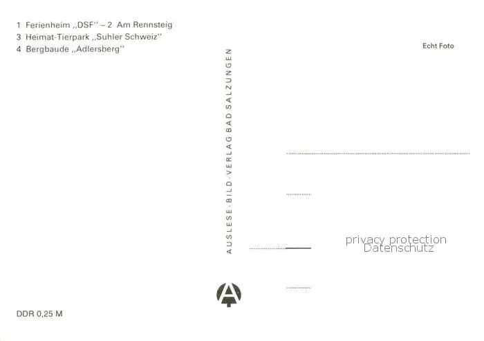 Suhl_Thueringer_Wald Ferienheim DSF Am Rennsteig Heimat Tierpark Suhler Schweiz Bergbaude Adlersberg Suhl_Thueringer_Wald postalisch nicht gelaufen nach 1965 Erhaltung siehe scans [WerneD78] WernPID7