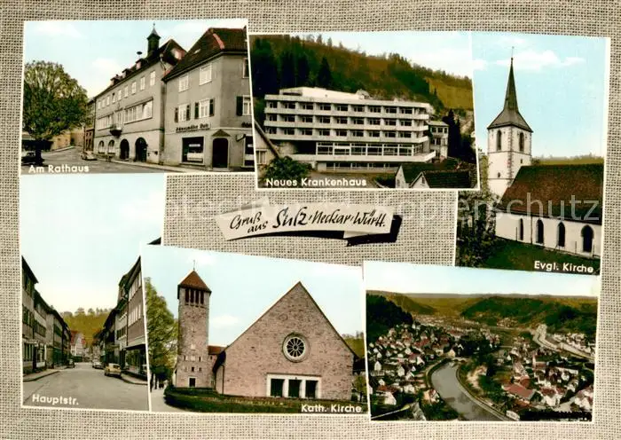 Sulz Neckar Kategorie Alte Ansichtskarten Postkarten bx93895 Sulz_Neckar Rathaus Neues Krankenhaus Ev Kirche Hauptstr Kath Kirche Fliegeraufnahme Sulz Neckar postalisch nicht gelaufen nach 1965 Erhaltung siehe scans [WerneD78]