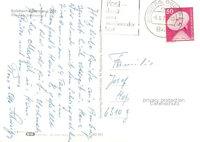 Sulzbach-Rosenberg partie am Stadtweiher Schwaene Sulzbach-Rosenberg postalisch gelaufen 1977 Erhaltung siehe scans [FriedD77] Frierer