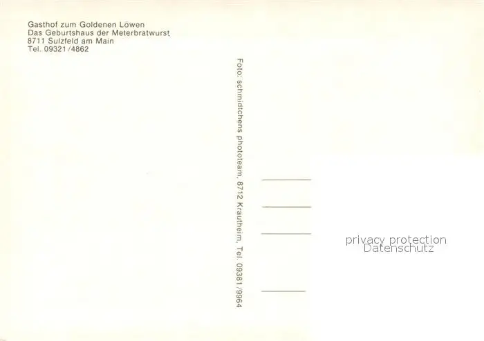 Sulzfeld_Main Gasthof zum Goldenen Loewen Geburtshaus der Meterbratwurst Sulzfeld Main postalisch nicht gelaufen nach 1965 Erhaltung siehe scans [FriedD77] Frierer