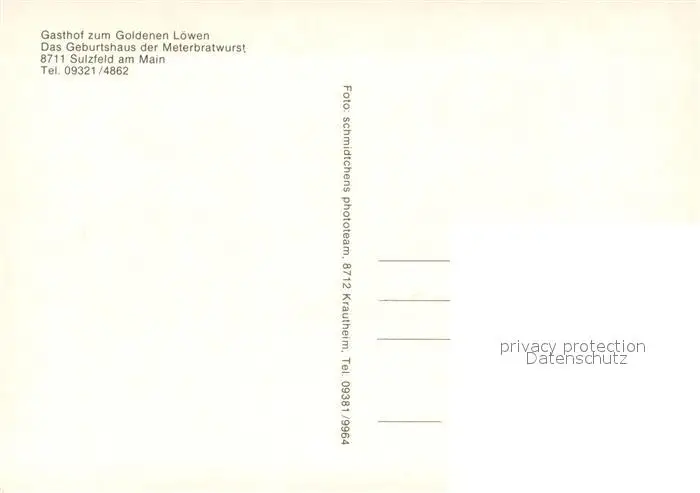 Sulzfeld_Main Gasthof zum Goldenen Loewen Geburtshaus der Meterbratwurst Sulzfeld Main postalisch nicht gelaufen nach 1965 Erhaltung siehe scans [FriedD77] Frierer