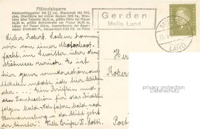 Sundern_Sauerland Moehnetalsperre Sperrmauer Sundern_Sauerland postalisch gelaufen 1932 Erhaltung siehe scans [FriedD77] Frierer