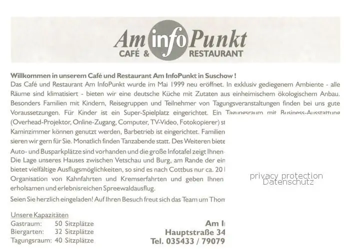 Suschow Cafe Am Info Punkt Restaurant Suschow postalisch nicht gelaufen nach 1965 Werbekarte (keine Postkarte) Erhaltung siehe scans [FriedD77] Werbekarte (keine Postkarte) Frierer