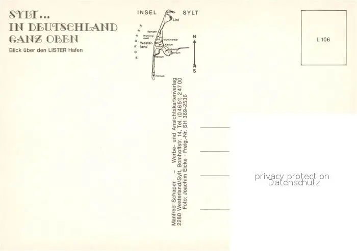 Sylt Fliegeraufnahme mit Lister Hafen Sylt postalisch nicht gelaufen nach 1965 Erhaltung siehe scans [WerneD78] WernPID7