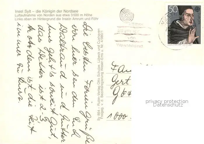 Sylt Fliegeraufnahme von Nord mit Amrum und Foehr Sylt postalisch gelaufen 1980 Erhaltung siehe scans [LiesaD40] LiesID40