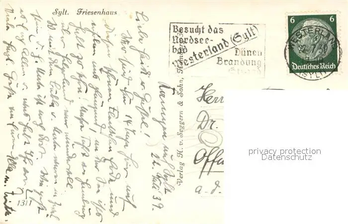 Sylt Friesenhaus Sylt postalisch gelaufen 1939 Erhaltung siehe scans [LiesaD40] LiesID40