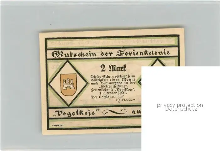 Sylt Gutschein d. Ferienkolonie 2 Mark Sylt postalisch nicht gelaufen bis 1920 Notgeldschein (keine Postkarte) Erhaltung siehe scans [LiesaD40] Notgeldschein (keine Postkarte) LiesID40