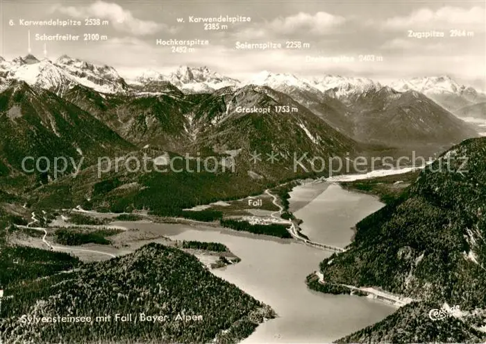 Sylvensteinsee_Lenggries mit Fall Fliegeraufnahme Sylvensteinsee_Lenggries postalisch nicht gelaufen 1921-1965 Erhaltung siehe scans [FriedD77] Frierer