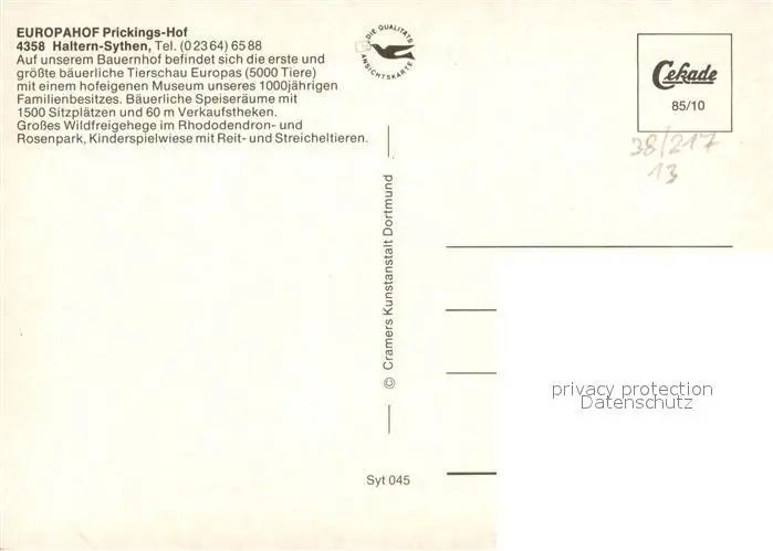 Sythen Europahof Prickings-Hof Bauernhof Museum Sythen postalisch nicht gelaufen 1985 Erhaltung siehe scans [FriedD77] Frierer